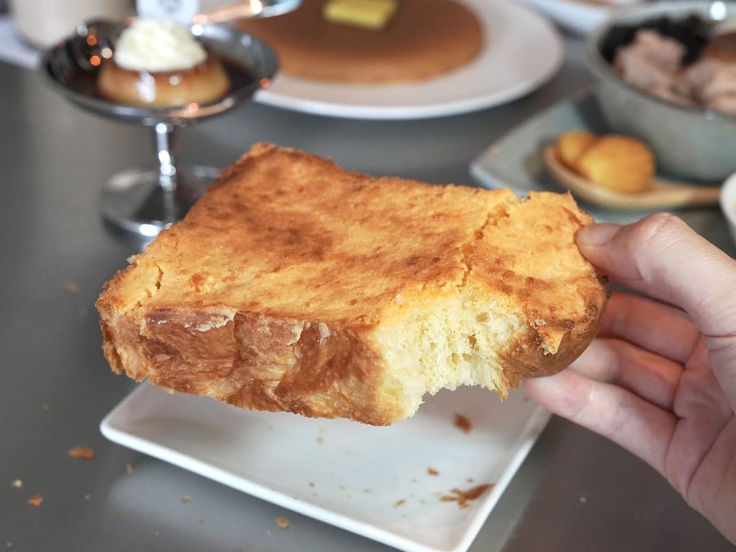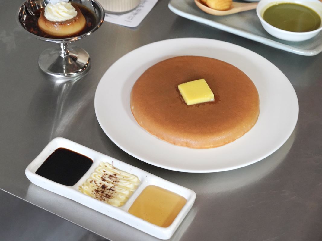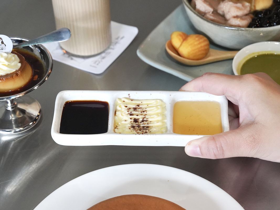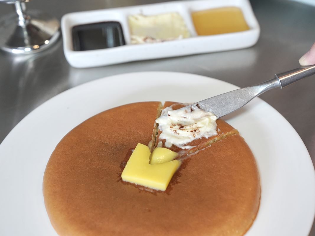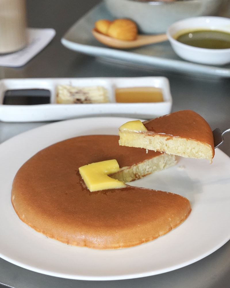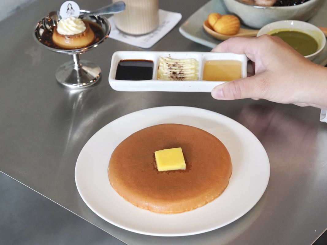 終於在高雄吃到厚鬆餅!光滑的表面很療癒~這次吃的是原味的,有附奶油、蜂蜜、黑糖。