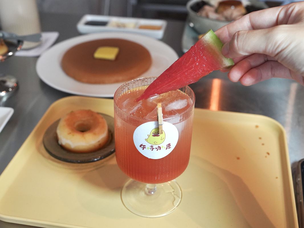 咖哩套餐還有附西瓜楊桃汁和檸檬磅蛋糕,飲品可以更換補差價。