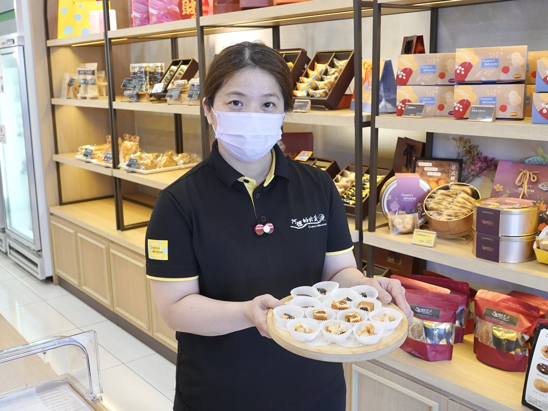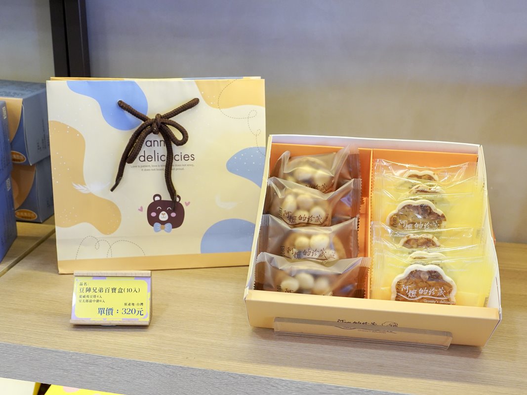 阿嬤的珍藏鳳山門市位在鳳山區鳳松路上,門市寬敞明亮,可以舒服選購禮盒,法式蝴蝶酥、夏威夷豆黑巧餅、天堂果氧身堅果塔 、夏威夷豆塔也有零售,想要買回家自己享用也沒問題。