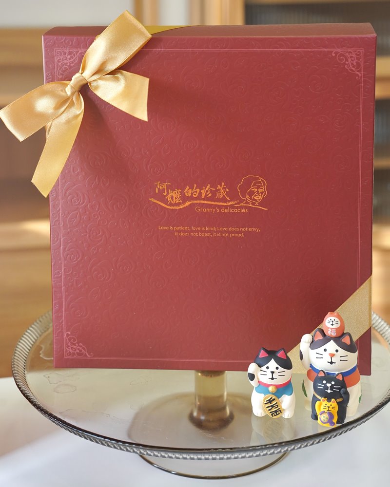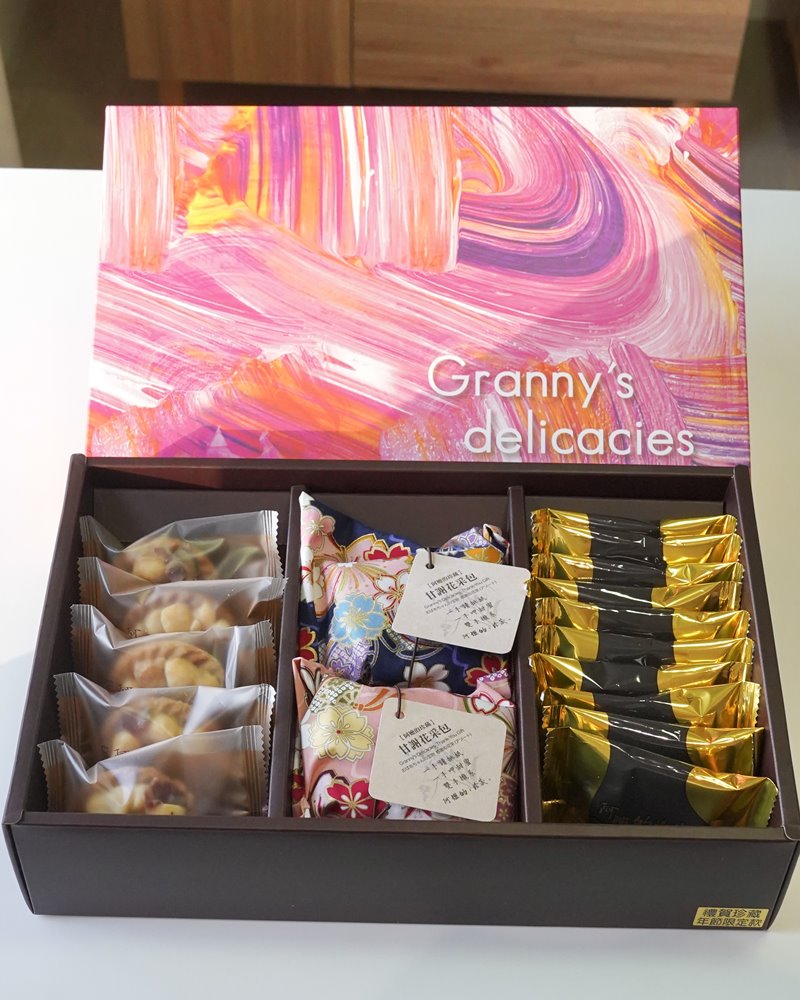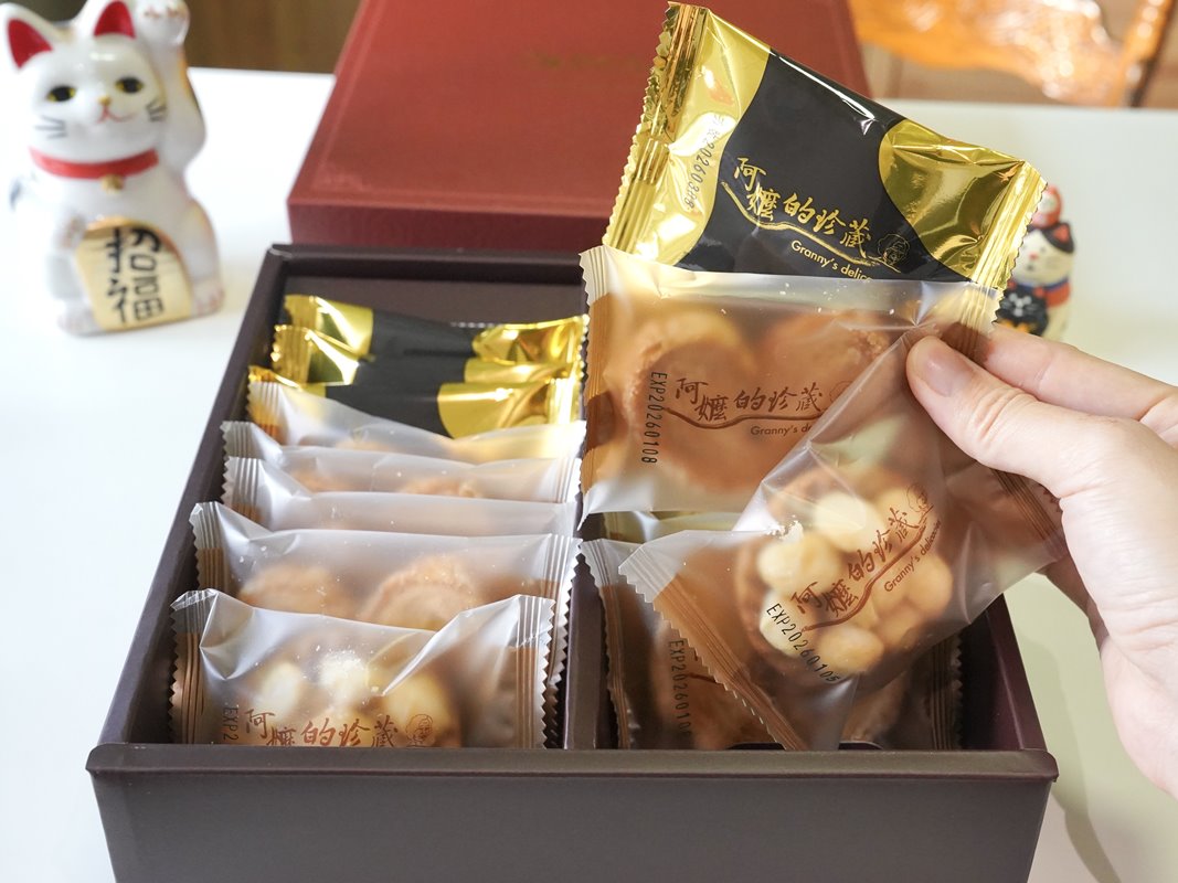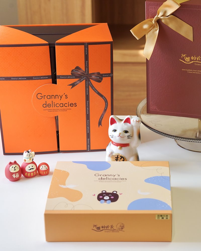 年末又到了準備新春禮盒的時間!台南知名甜點&伴手禮品牌 阿嬤的珍藏,高雄店位在鳳山區鳳松路上,販售多種口味法式塔類、禮盒、夏威夷豆塔、蝴蝶酥等。即日起 ~ 1/14 (三)有訂購禮盒早鳥優惠,滿 NT$3,000 現折 NT$300非常划算!!禮盒有超多種選擇,最多人選購的是雙層的御璽珍藏禮盒 F,愛馬仕橘的禮盒很有質感送禮很適合,法式蝴蝶酥、夏威夷豆黑巧餅、天堂果氧身堅果塔 、夏威夷豆塔 人氣品項一次滿足,夏威夷豆塔是我的第一名!酥脆塔皮加上滿滿夏威夷豆越嚼越香,甜度恰到好處好好吃~禮賀節慶限定款 也是送禮很熱門的品項,包含獨家甘謝花采包,花布色彩漂亮,豆太郎最中餅可以吃到最中餅米香和焦糖夏威夷豆的香氣。門市都可以試吃,再挑選喜歡的品項選購禮盒!可以在網路預訂或門市預訂,記得把握早鳥優惠折扣~