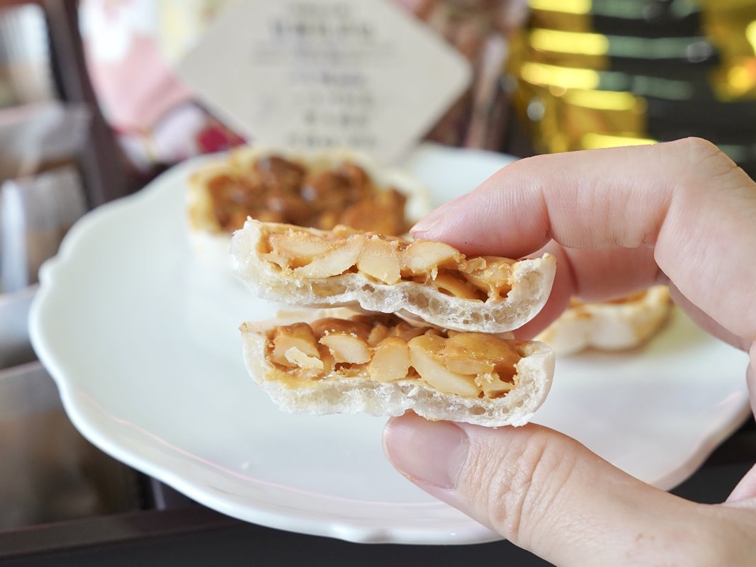 豆太郎最中餅 結合日式點心的元素,最中餅餅皮帶有米香,上層是加了焦糖的夏威夷豆,搭在一起非常融合。