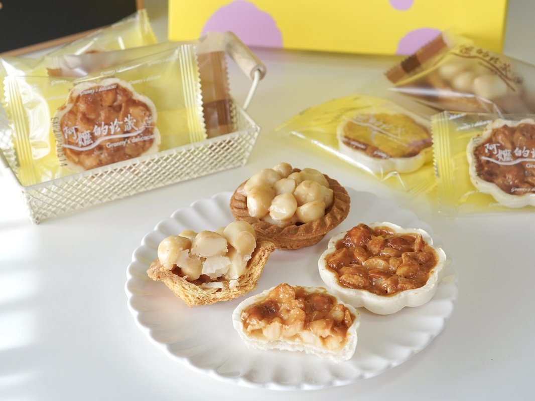 阿嬤的珍藏法式小塔使用法國奶油、比利時巧克力、進口乳酪、海藻糖等,甜品低糖、低油,塔類每一款都很好吃又不會過於甜膩。塔類有好幾種口味,最多人購買的是法式珍藏禮盒A。