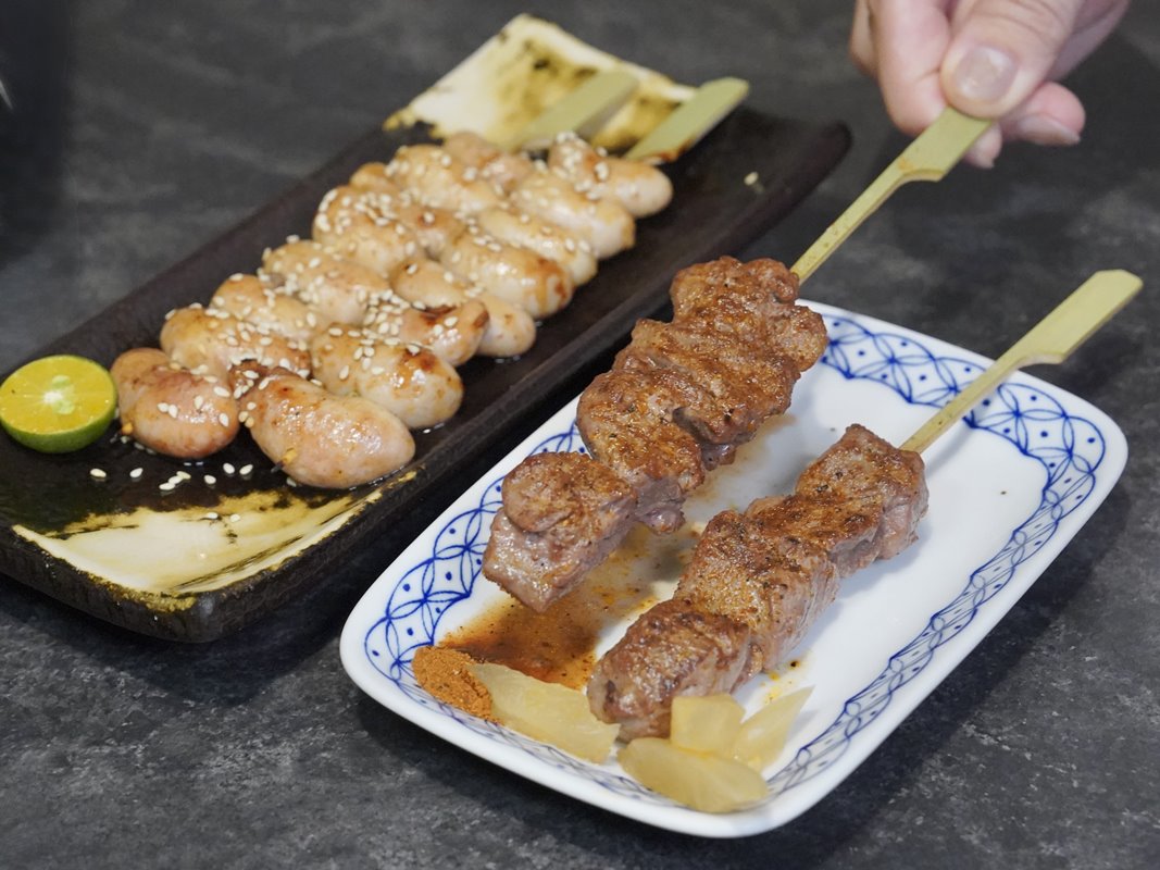 竟然還能吃到烤雞佛!雞佛刷上醬汁炙烤,熱熱吃咬開會爆汁。愛吃雞佛的一個人可以吃到兩串。