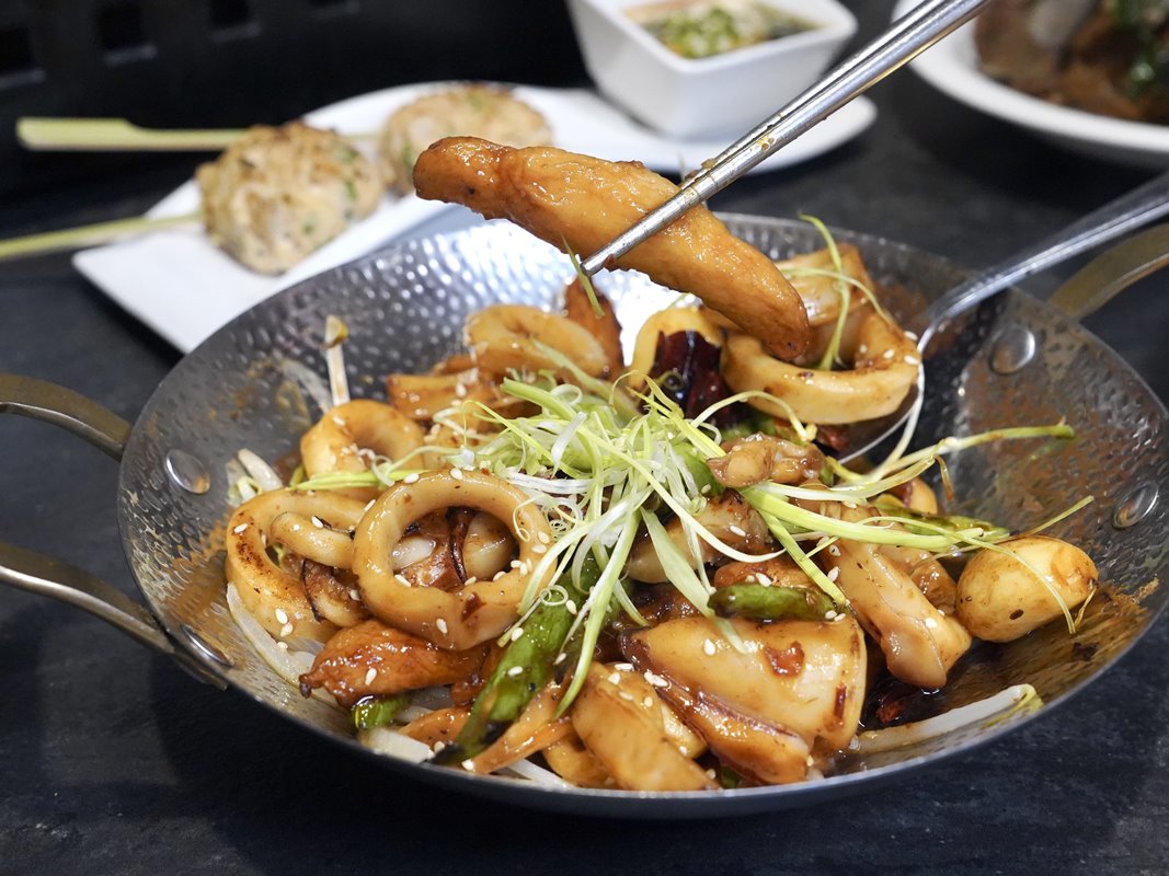 乾鍋大中卷也是會辣的,中卷新鮮Q彈,裡面的甜不辣口感很有彈性。
