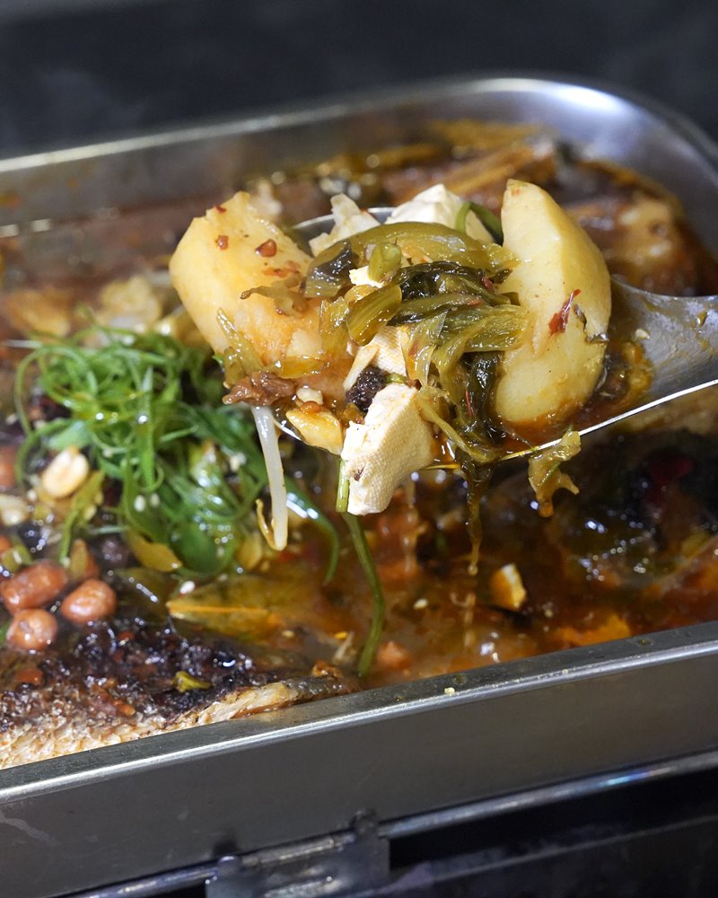 海鱸魚炙烤後放入麻辣湯底,酸辣香十足,魚肉軟嫩入味,超級好吃又下飯。