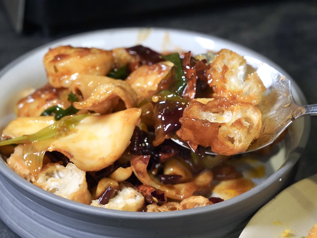 這道裡面還加了油條,搭配宮保醬汁很美味。
