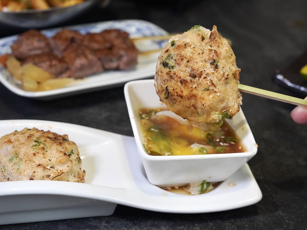 雞肉丸是店家自製,口感帶點彈性,搭配生蛋黃和醬汁很好吃。