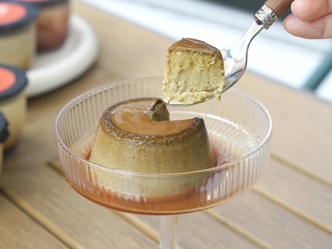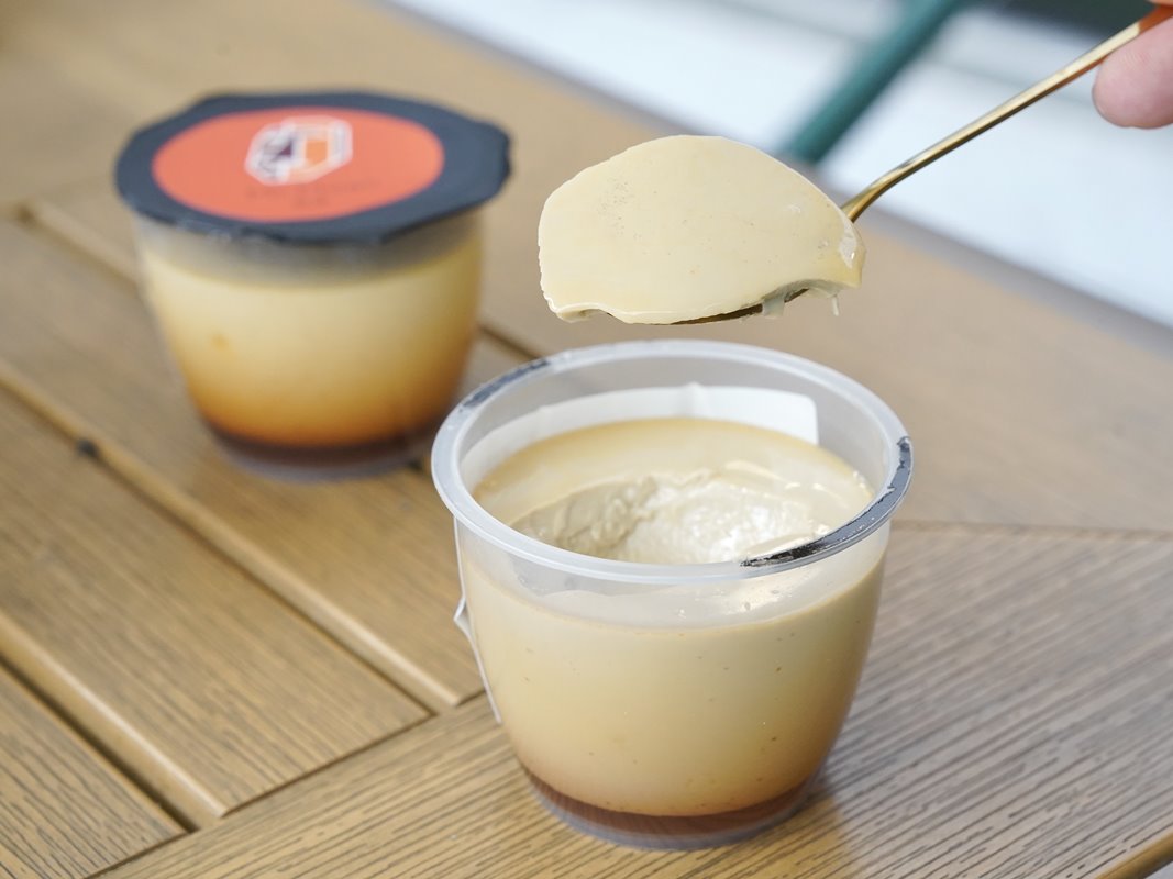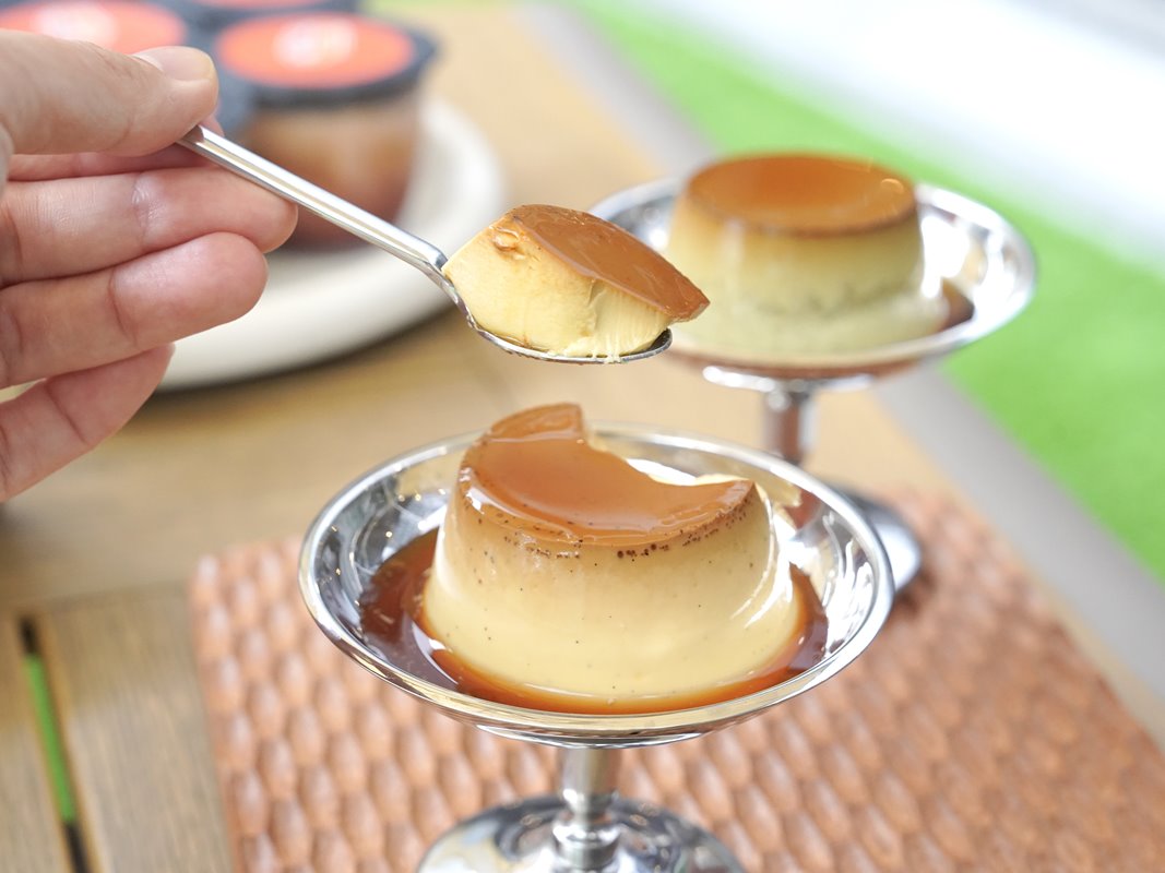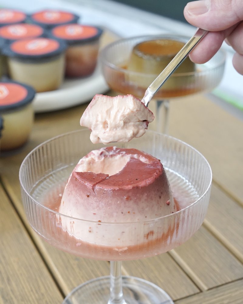 可以直接用湯匙挖,如果想要更漂亮自己倒到布丁容器裡真的太漂亮了~搖晃一下就可以完美脫模。