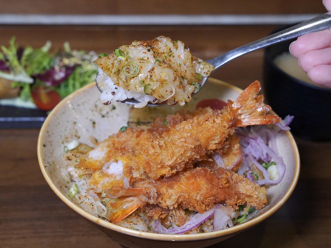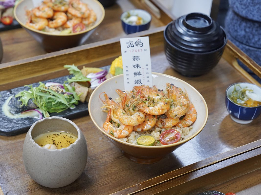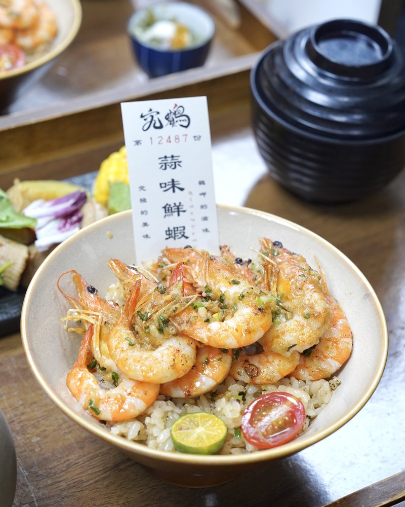 已經賣了一萬多份的蒜蝦飯是究鶴的招牌餐點,蒜香真的超級濃郁!蝦子和自製蒜醬爆炒後非常涮嘴下飯,蝦子已經去殼,根本就是白飯殺手。
