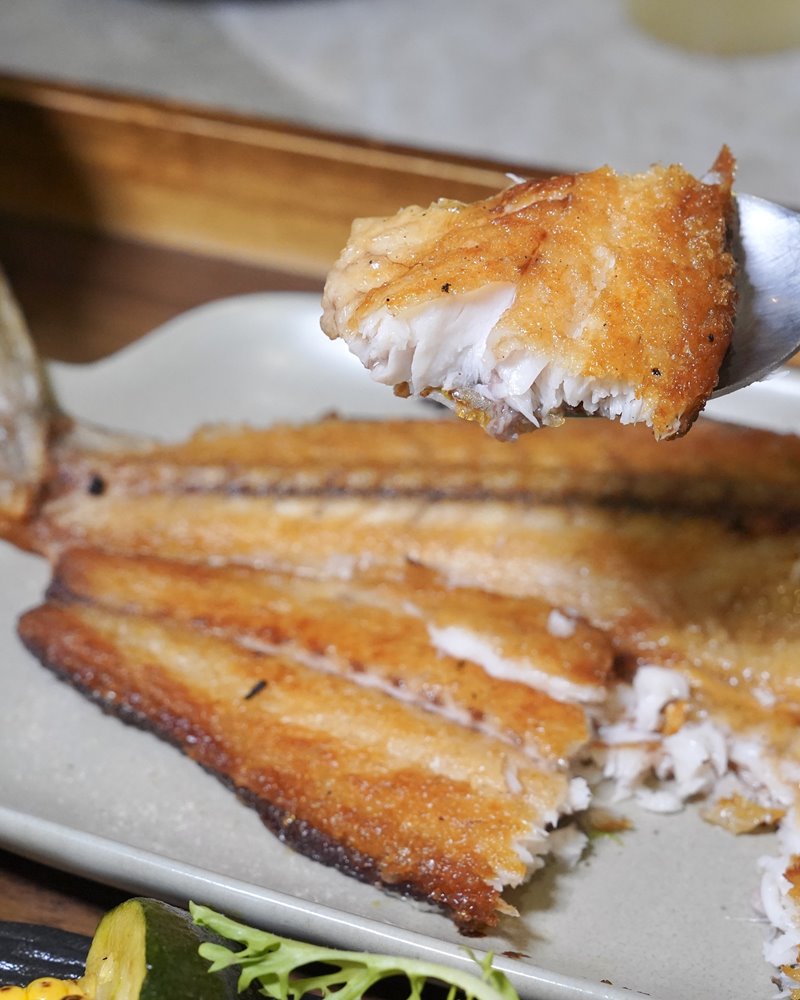 愛吃魚的很推薦這道!午仔魚一夜干煎到上色,肉質細嫩帶點焦香,胡椒簡單調味就能呈現魚本身的美味。