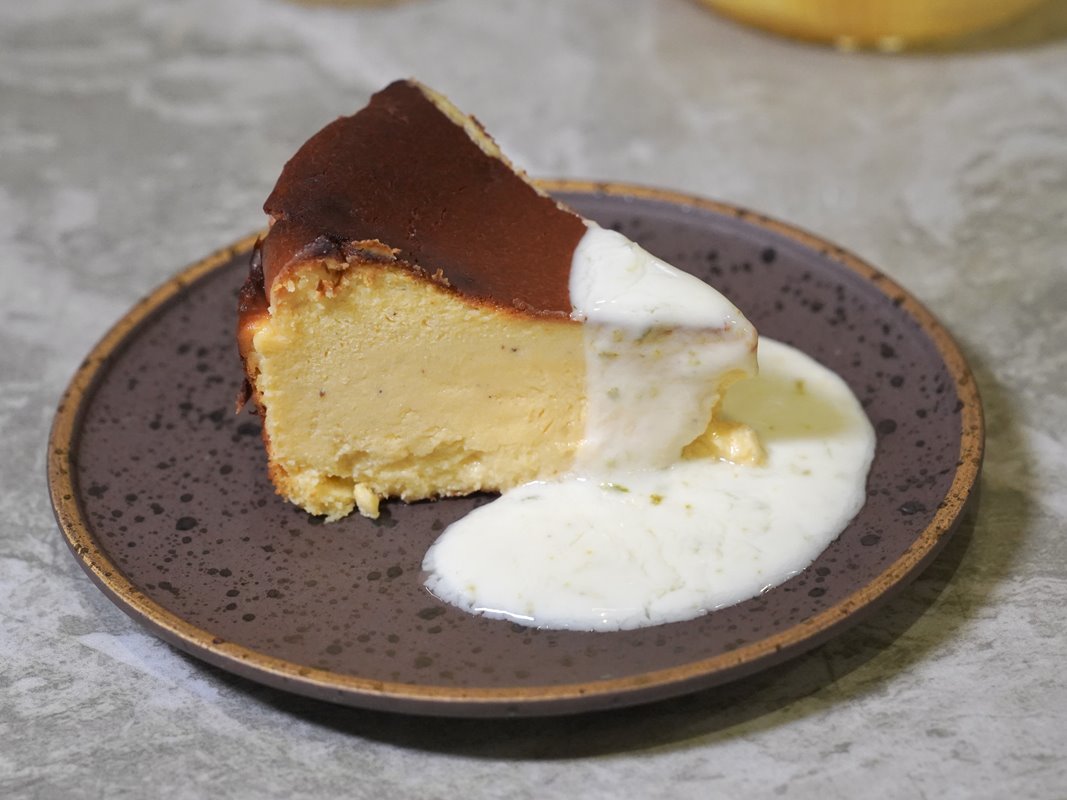 巴斯克蛋糕搭配檸檬優格醬,乳酪和檸檬結合在一起濃郁又不會過甜。