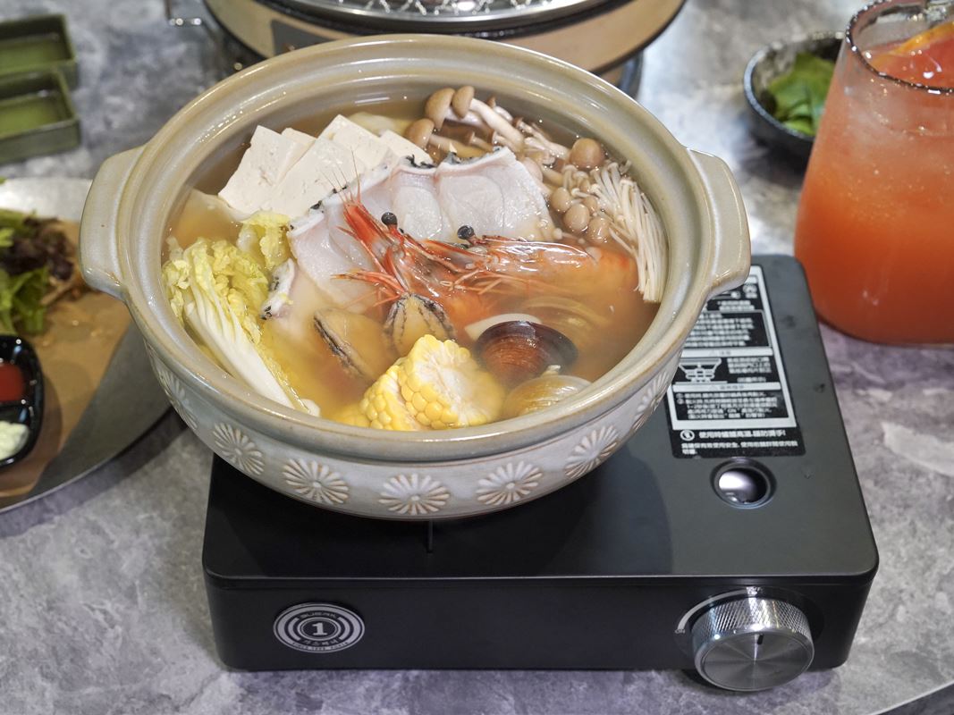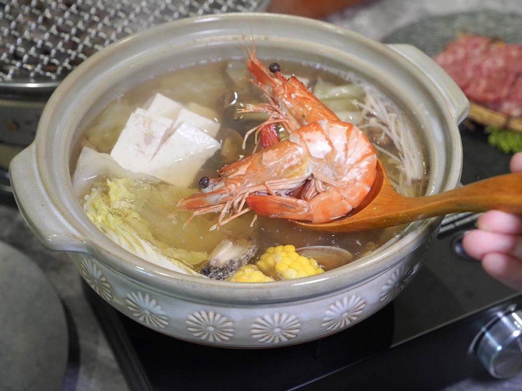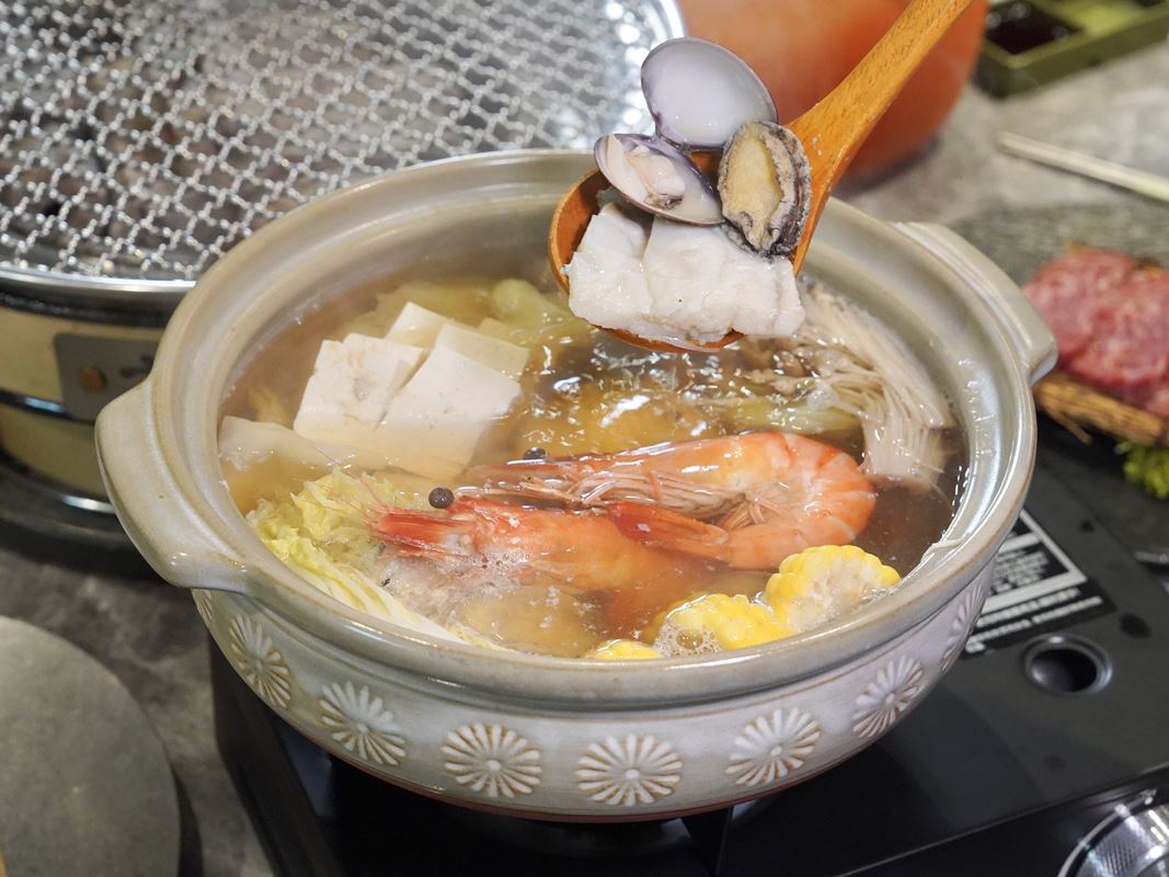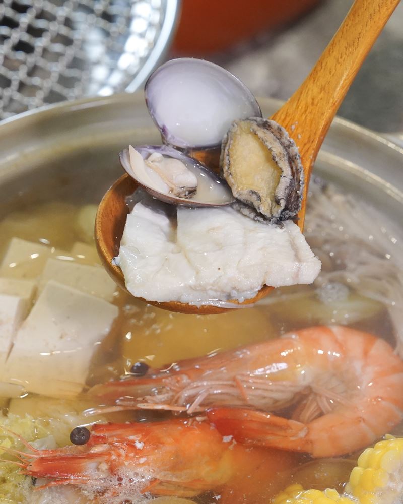 海鮮料給得很大方,有大蝦、鮑魚、蛤蠣、龍膽石斑,海鮮口感都很新鮮,是很清爽無負擔的湯頭。