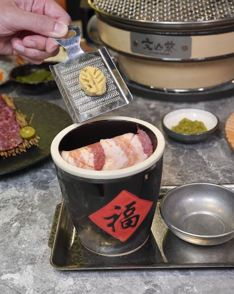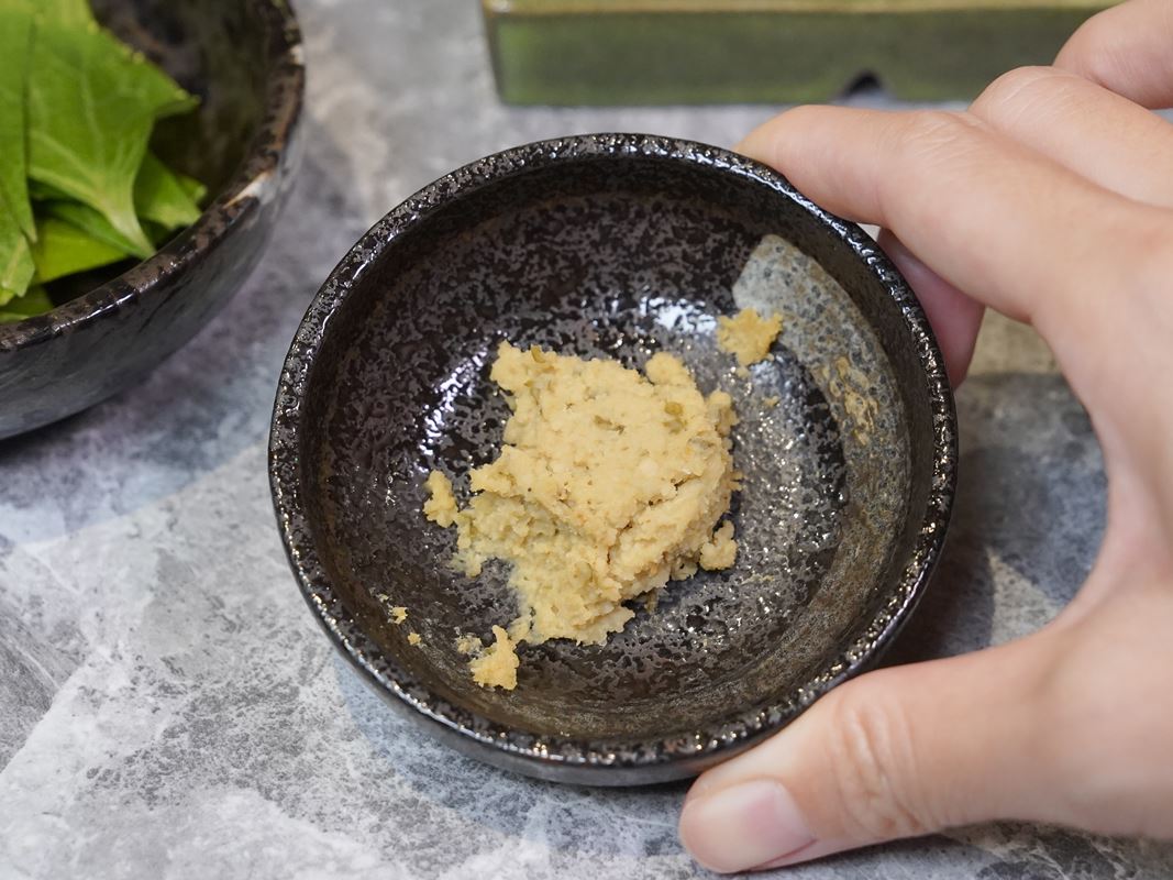 使用的是來自阿里山的山葵,山葵醬和平常吃到的芥末比起來是溫和帶點清香、甜味,和微微辣感的~搭配肉品很涮嘴。