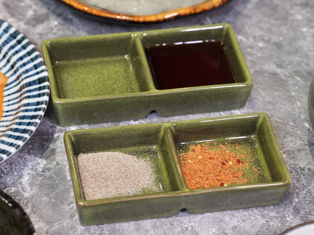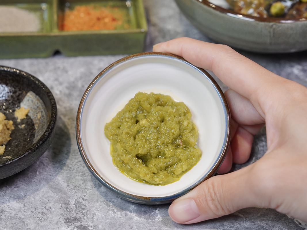 有附特調燒肉醬、椒鹽、花椒辣粉,還有超特別的阿里山山葵醬。
