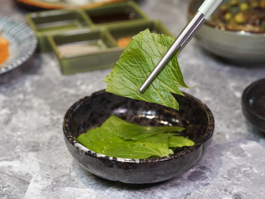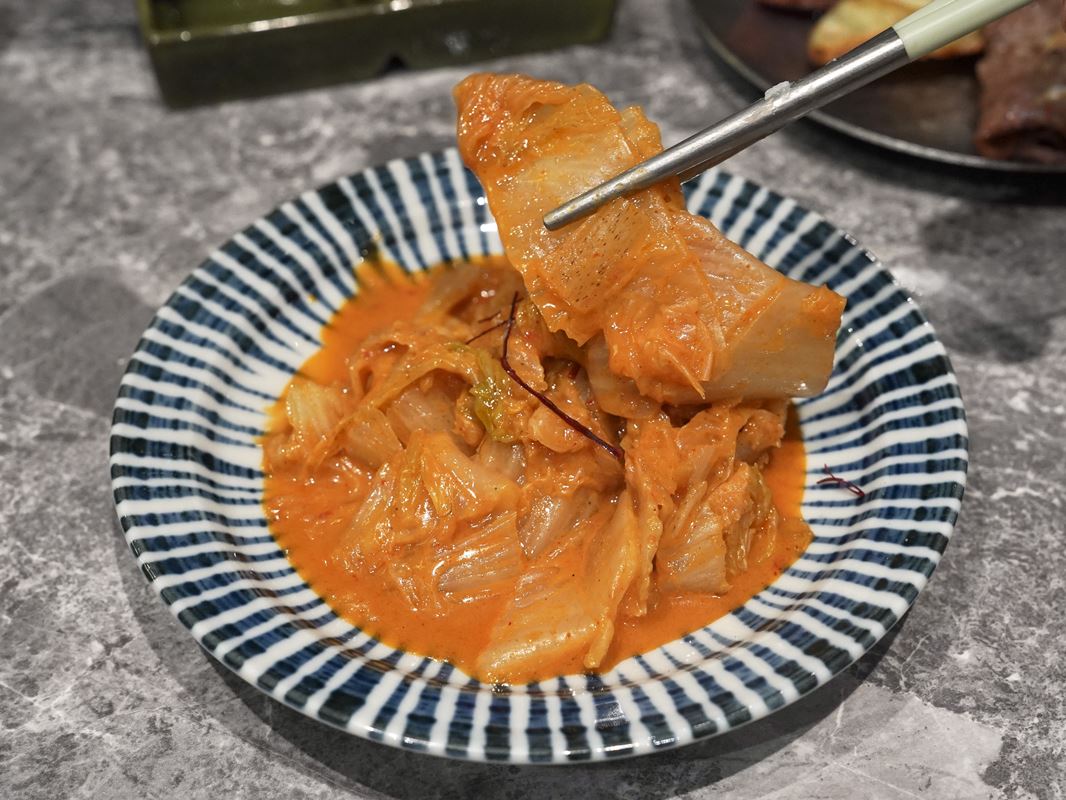 胡麻泡菜醬汁很濃郁,單吃很開胃,也可以搭配包肉生菜和肉品一起享用。