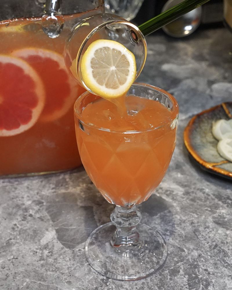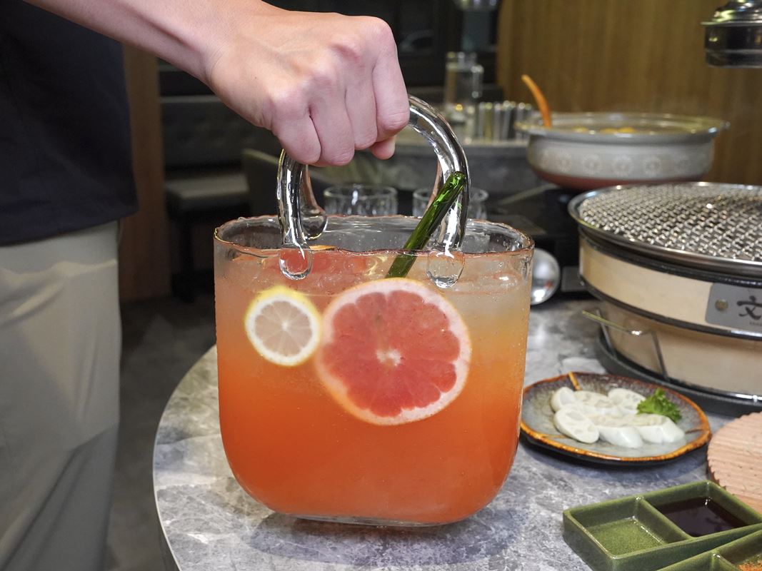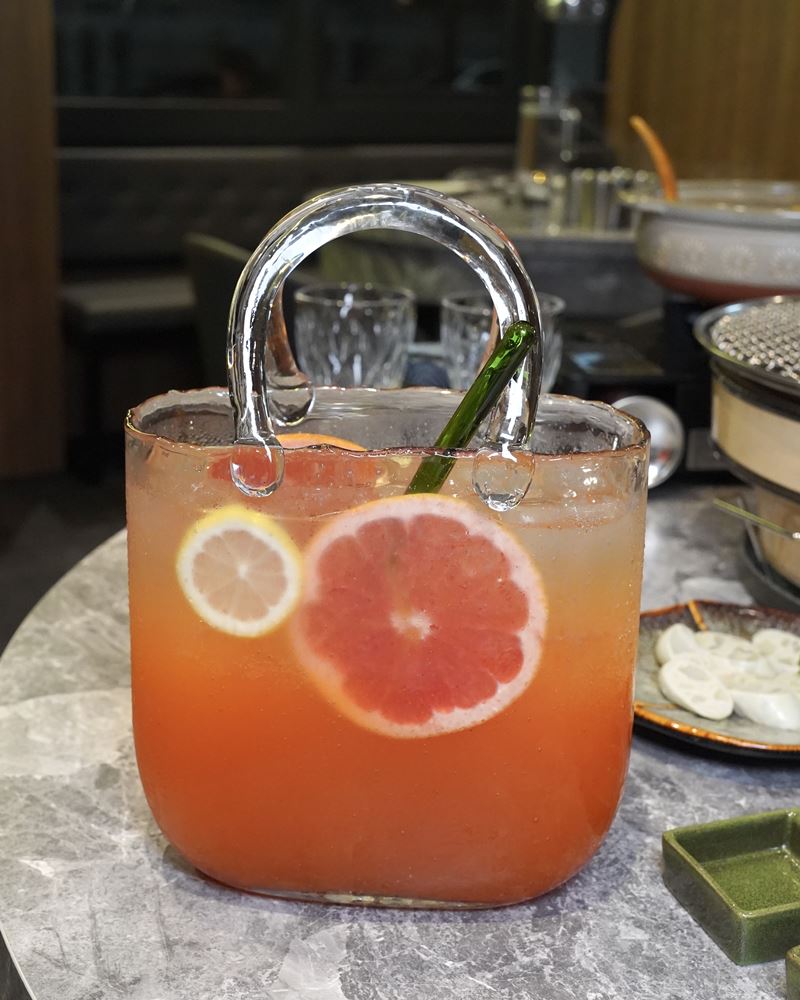 多人聚餐推薦點這壺!橙香西柚蘇打直接給2000毫升,加了葡萄柚、柳橙,還有氣泡口感,清爽涮嘴很好喝。