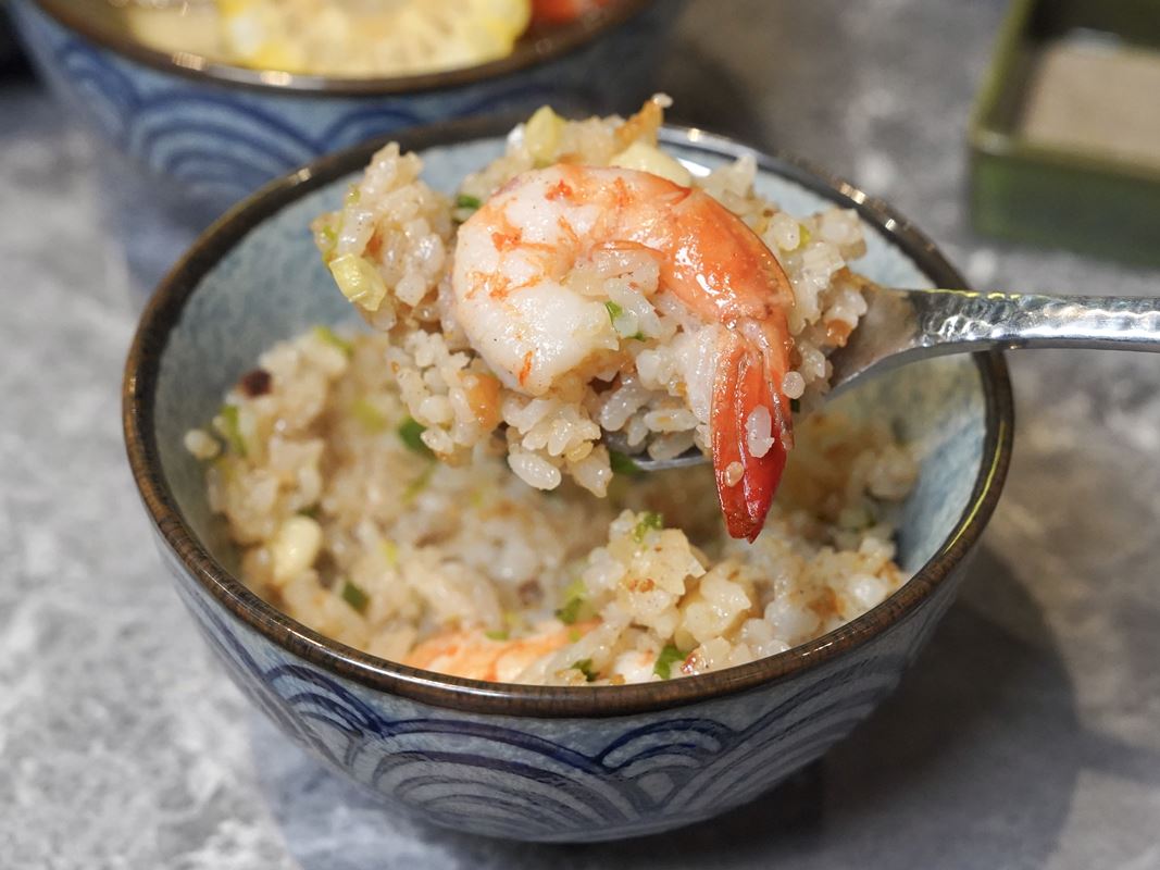 蝦子已經剝好殼,蝦肉有彈性,搭配蒜香十足的米飯很美味。