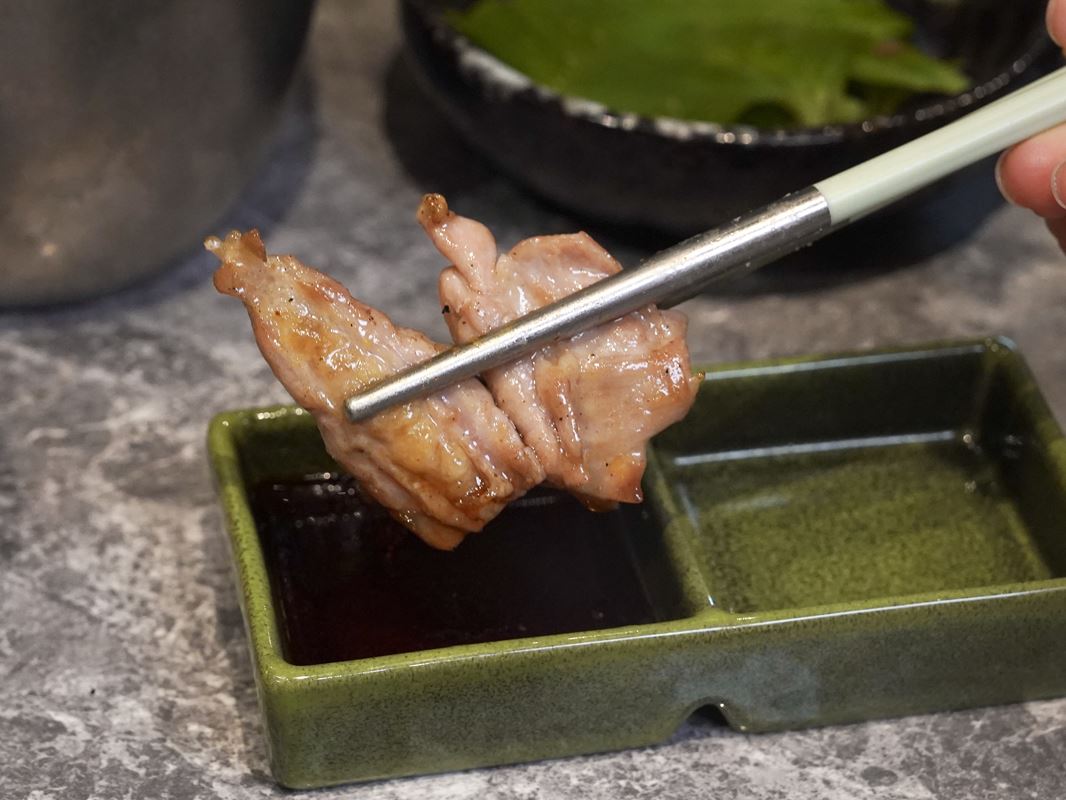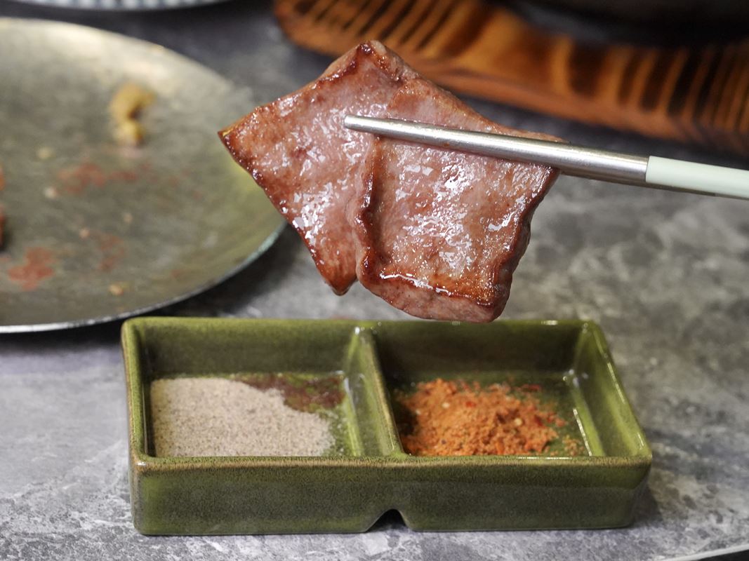 厚切牛舌烤到外層上色焦脆,裡面很多汁,搭配少許椒鹽,富有彈性又多汁好香好喜歡。