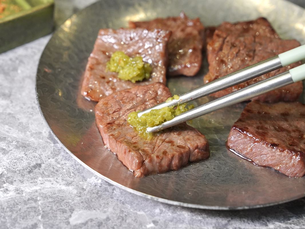 搭配山葵醬享用讓肉的風味更多了不同的層次。