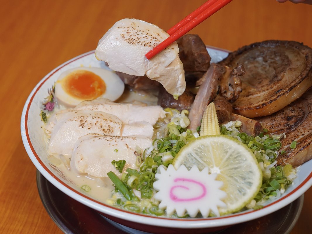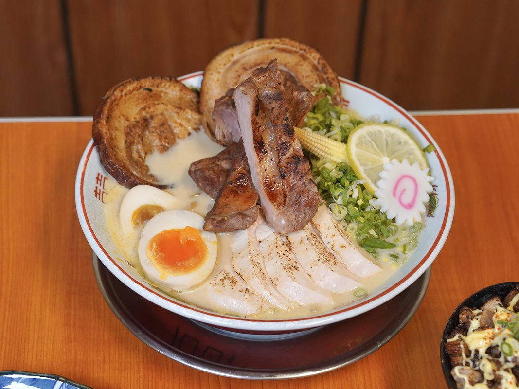 特盛款配料超滿!包含肋排、叉燒、雞胸、溏心蛋,食量大又愛吃肉的推薦這款~可以吃得很滿足。