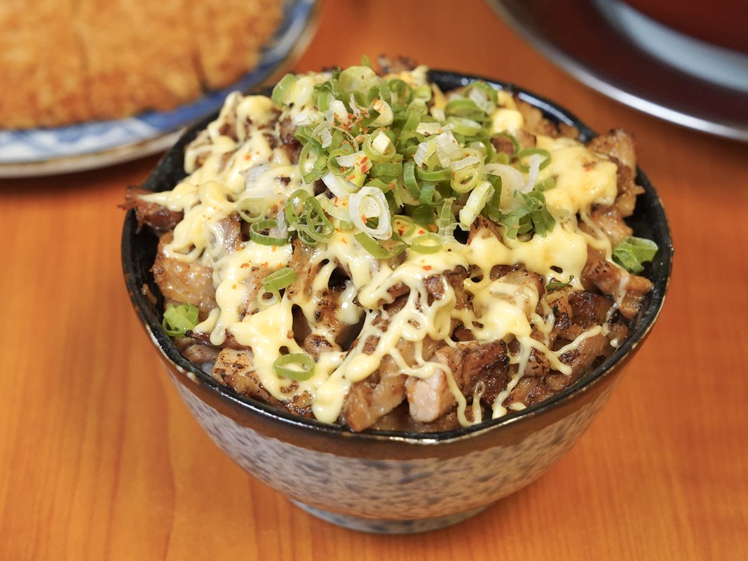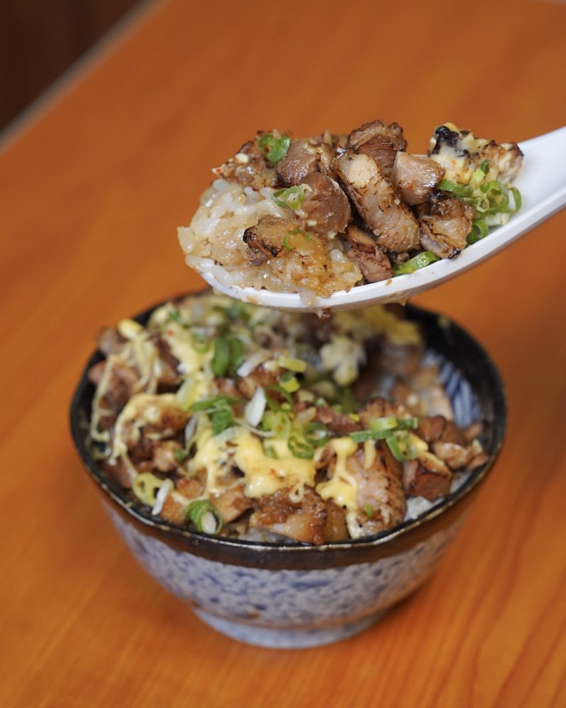 叉燒飯也是人氣必點!撲上滿滿炙燒過的叉燒肉,再加上美乃滋和蔥花。