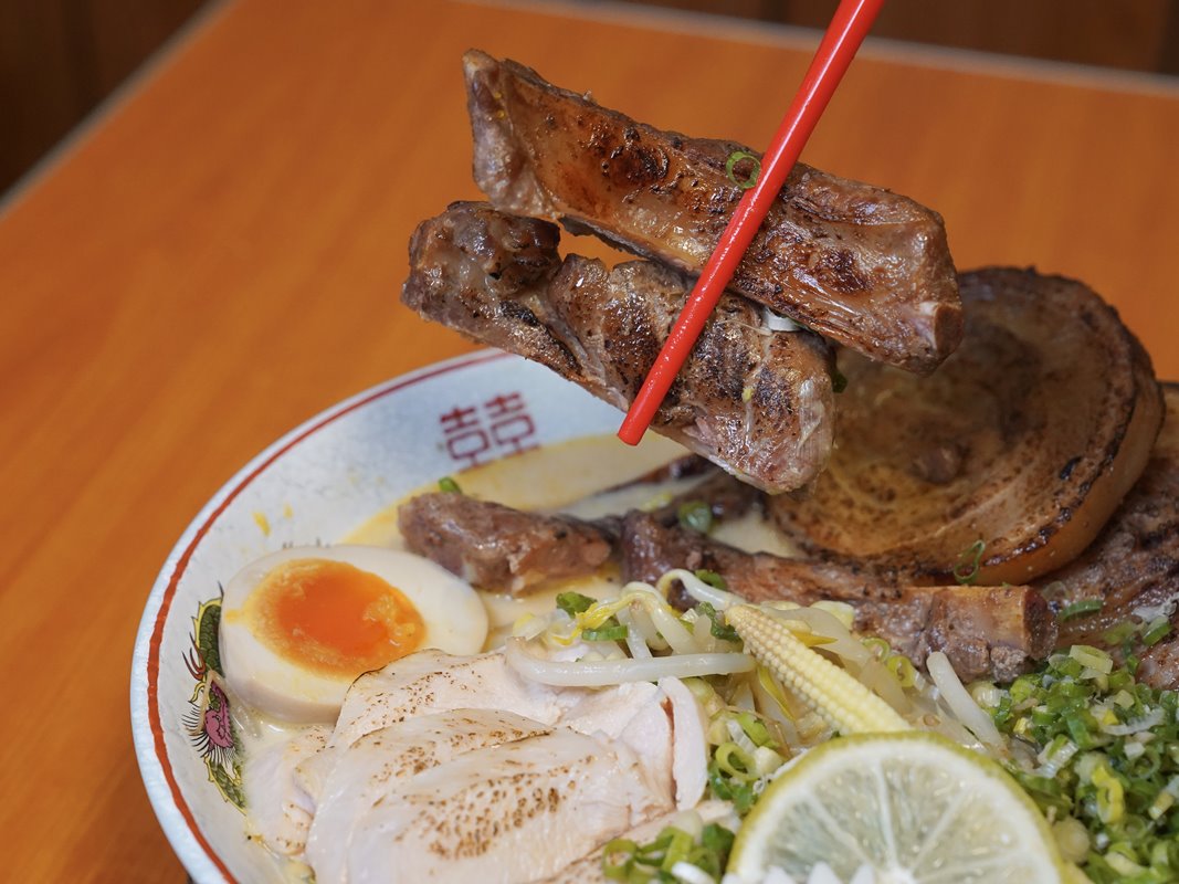 很少在拉麵店看到豬肋排!肋排也很入味。
